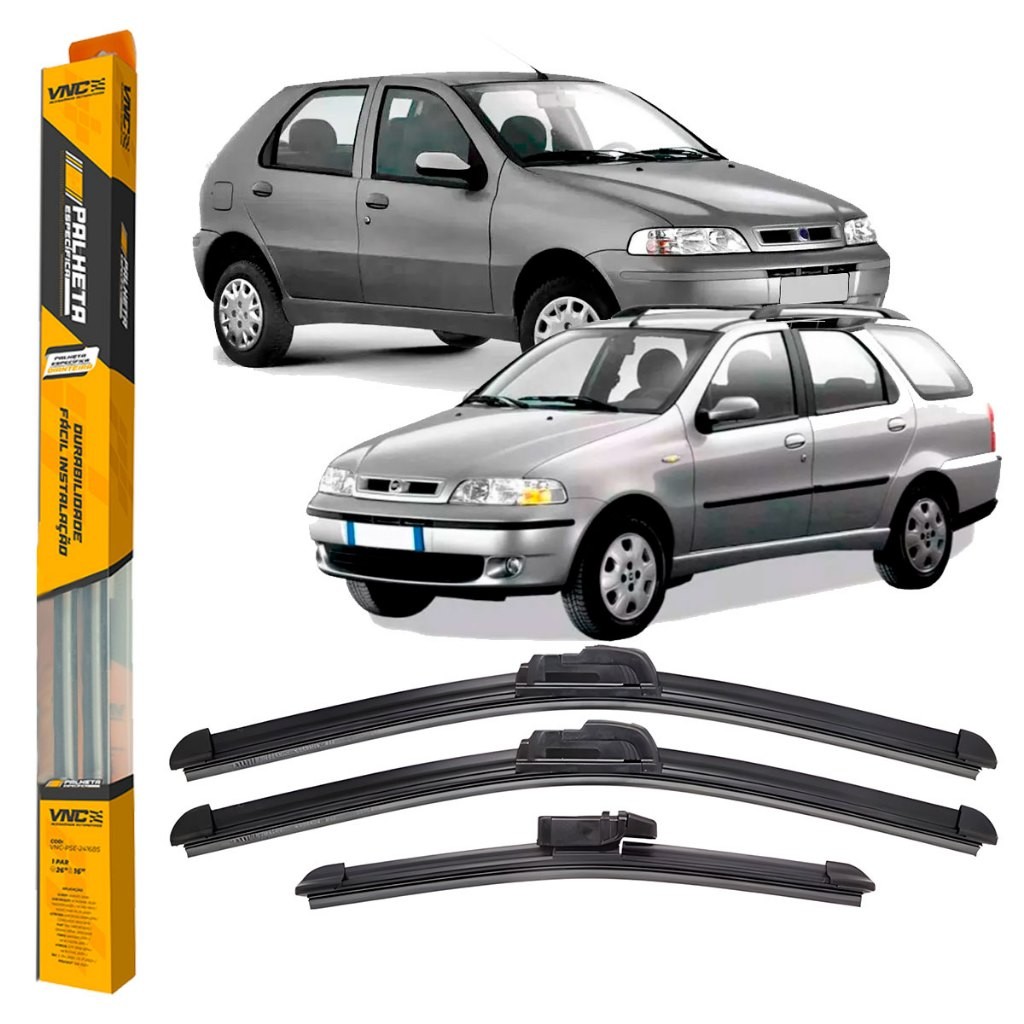 Kit de 3 Palhetas para Limpador Parabrisa Dianteiro e Traseiro para Fiat Palio G2 2001 Até 2007