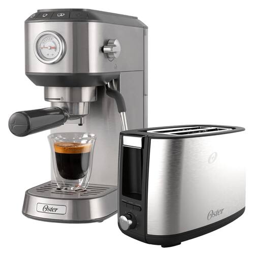 Kit Cafeteira Espresso Compacta e Torradeira Inox Oster - 220V