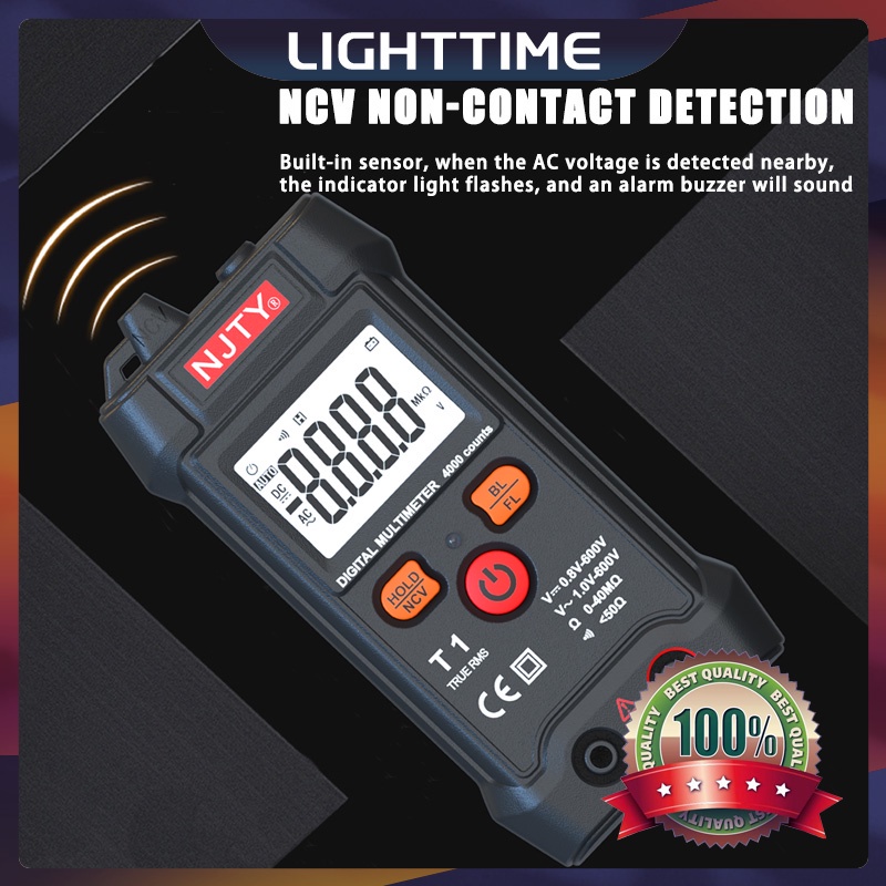 Mini Multímetro Digital Inteligente Claro T1 NJTY Portátil Medidor Elétrico True RMS NCV 600V AC DC Voltage Tester