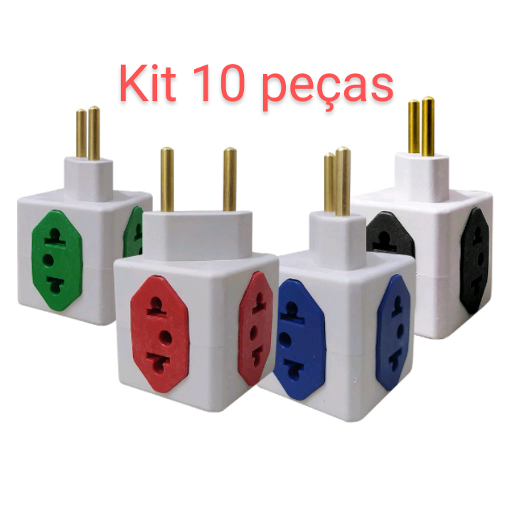 Kit 10 Adaptador Benjamin Cubo T 4 Tomadas Energia Casa Cozinha Coloridos