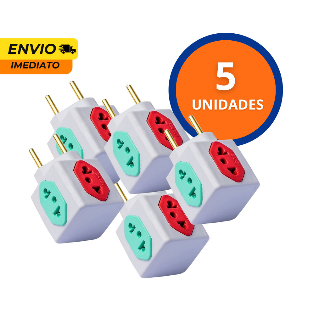 KIT 5 Adaptador Tomada Benjamin Cubo t 4 entradas 10a/20a casa e cozinha coloridos