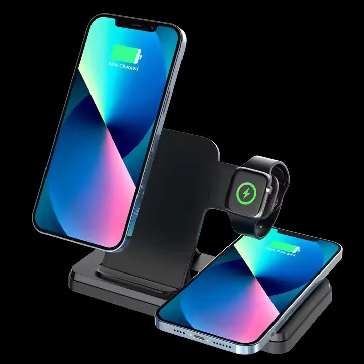 Carregador 3 em 1 por indução compativel com Smartphones tecnologia Qi, Apple Watchs e Airpods carga rápida