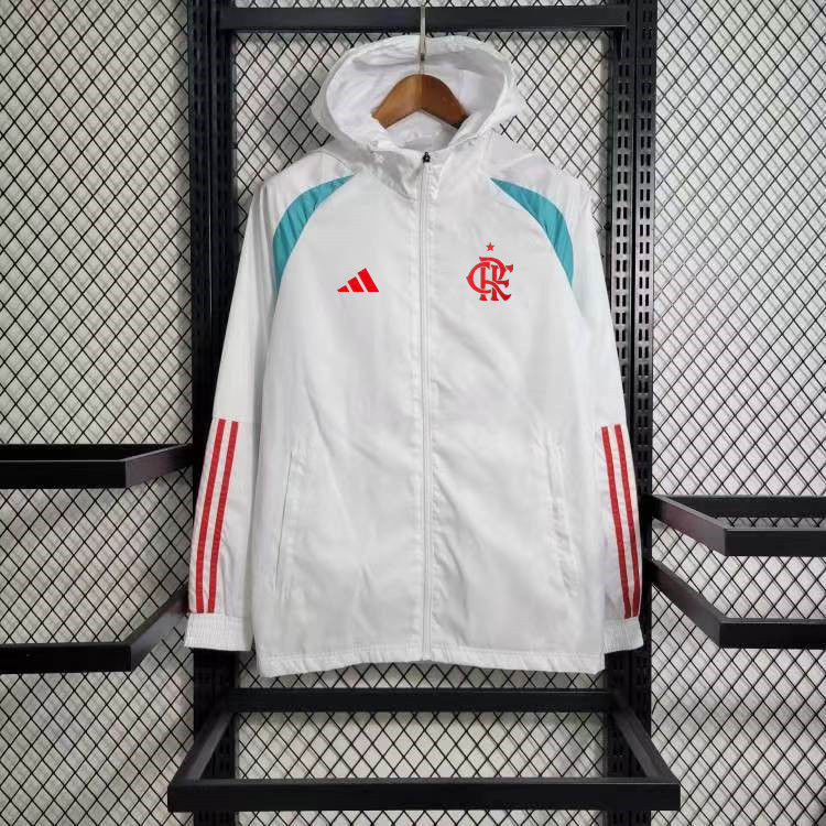 Flamengo com capuz esportivo aparência roupas esportivas jaqueta corta-vento com capuz meia tira vermelha branca