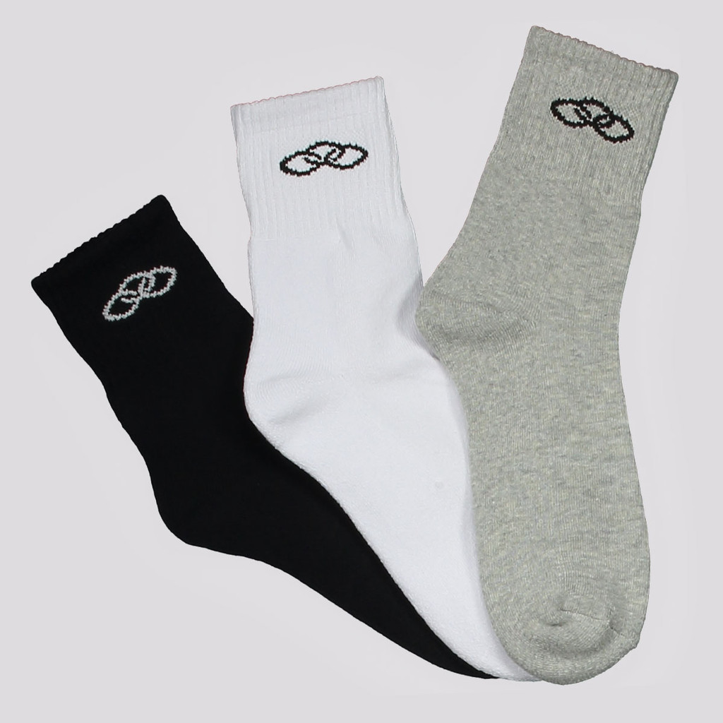 Kit Meia Olympikus Tripack Cano Médio Branca Cinza e Preta