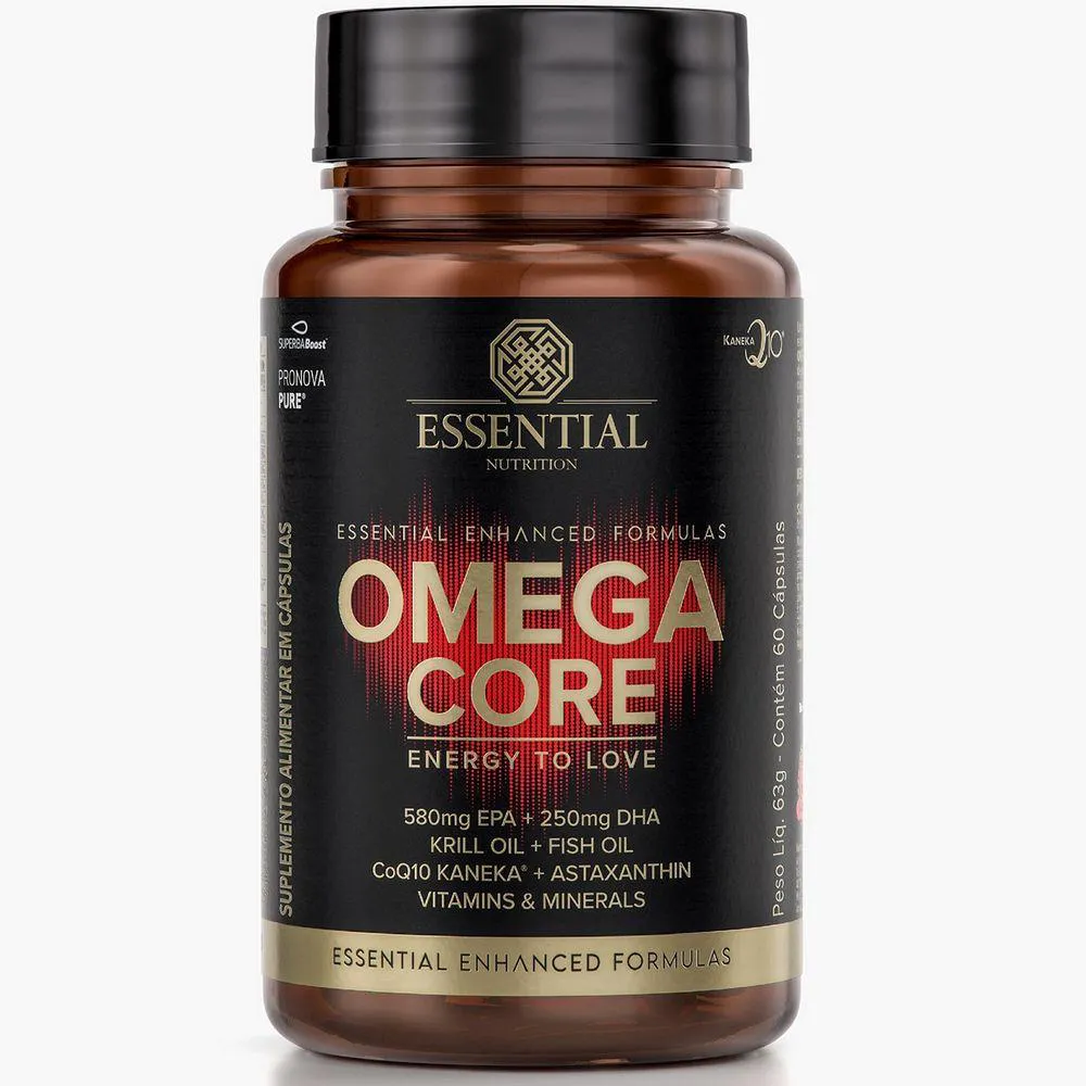 Ômega Core + Coq10 + Ômega 3 TG 60 Caps Essential Nutrition Original e Lacrado