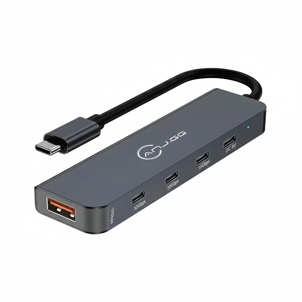 Hub USB-C 5 em 1 com 3 Portas Type-C 10Gbps, USB 3.0 e Entrada DC 5V – Adaptador para Notebook e PC