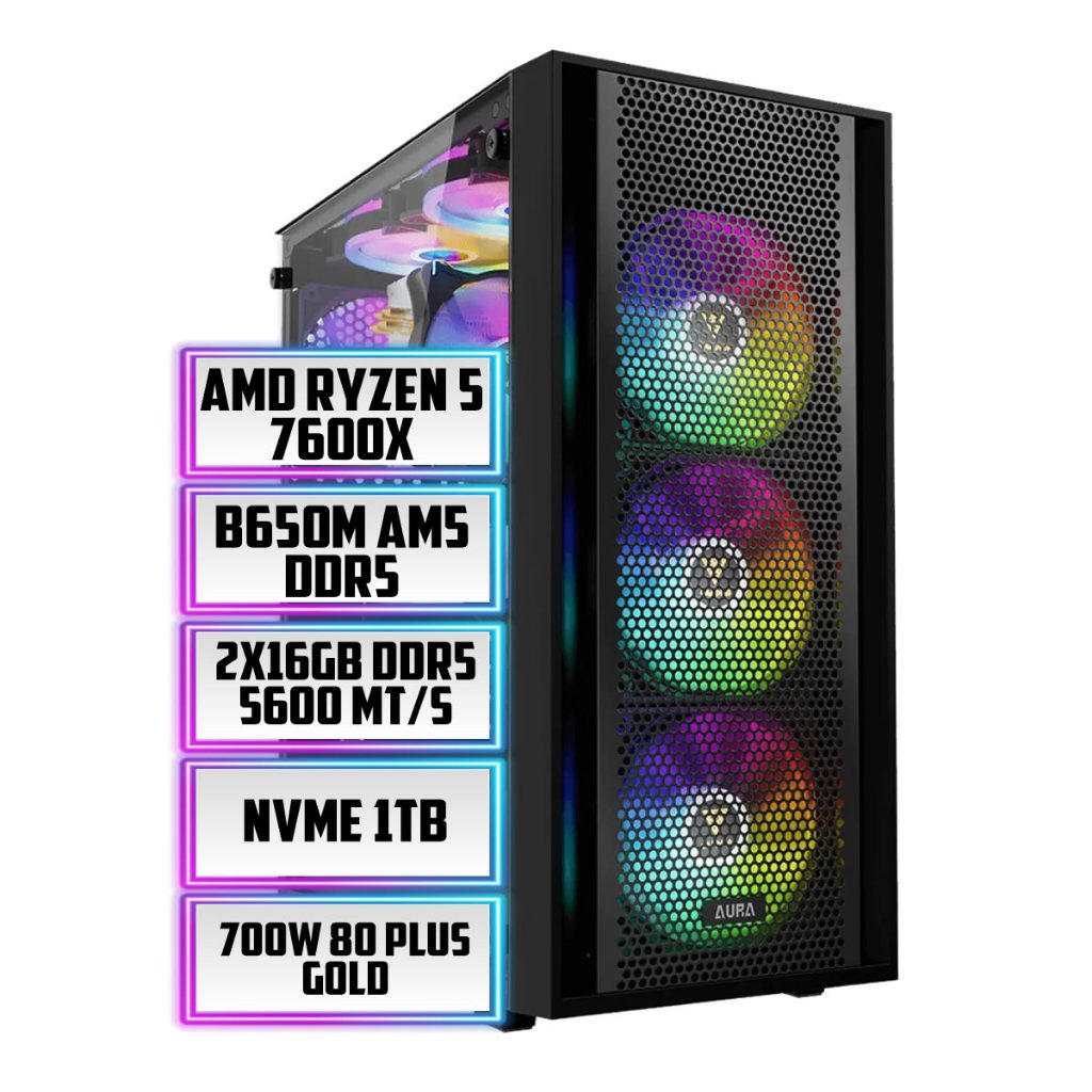 CPU Gamer AMD Ryzen 5 7600X, Water Cooler 240MM, DDR5 32GB, SSD M.2 1TB, Geforce RTX 5060 8GB, WIFI