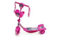 Patinete Infantil Barbie Musical Rosa Lilás Menina 3 Rodas Com Luzes Freio Cestinha Altura Ajustável