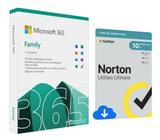 Microsoft 365 Family 1 licença 12 meses 6 usuários 1TB One drive + Norton Utilities Ultimate 1 Usuário 10 Dispositivos