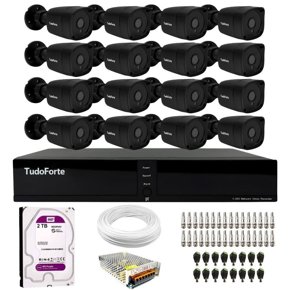 Kit 16 Câmeras Tudo Forte Tf 2020 B Black Full Hd 1080p Bullet Visão Noturna 20m Proteção Ip66 + Dvr Tudo Forte TFULL HDx 3316 16 Canais + Hd 2TB Purple