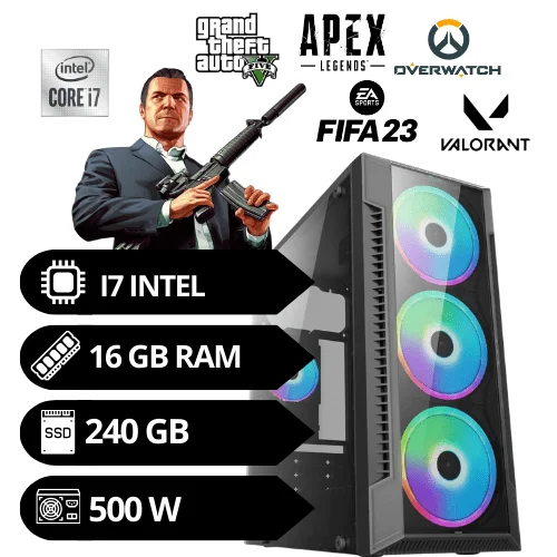 PC Gamer Intel I7 16gb SSD 240 Gb 500 W Gamer RGB Vga 2 Gb