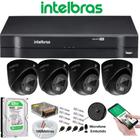 Kit 4 Cameras de Seguranca Intelbras 3220 Full Color C/ Audio, Dvr 4ch C/ Hd 500gb