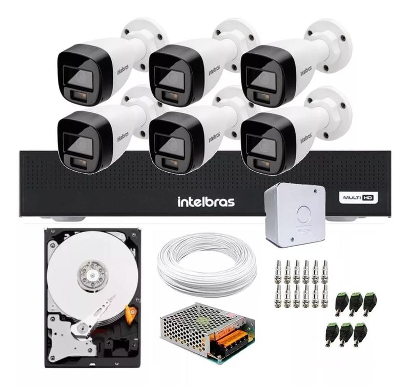 Kit 6 Cameras de Segurança Intelbras 1120b Full Color, Dvr 8 Canais C/ Hd