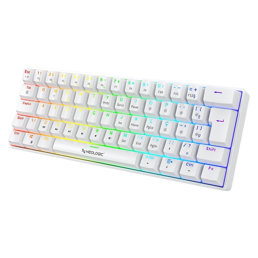 TECLADO GAMER MECÂNICO NEOLOGIC PRECISION PRO POLAR 60% RGB HOT SWAP 61 TECLAS SWITCH RED BRANCO CABO TIPO C PROPLR-RED