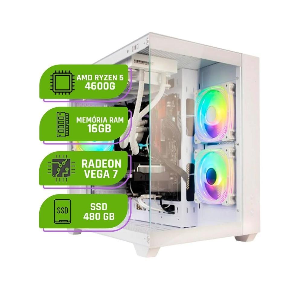 PC Gamer Alligator Shop, AMD Ryzen 5-4600g, Memória RAM 16GB DDR4, Vega 7, SSD 480GB, Branco