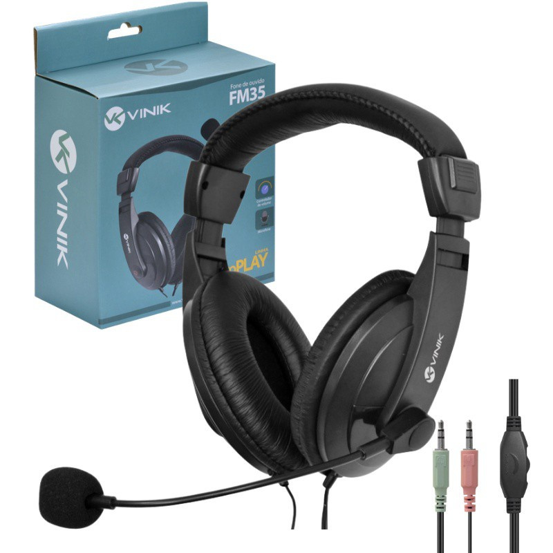 Fone Headset GO PLAY VINIK FM35 P2 Headphone Headfone para PC gamer ou CELULAR SMARTPHONE SMARTFONE