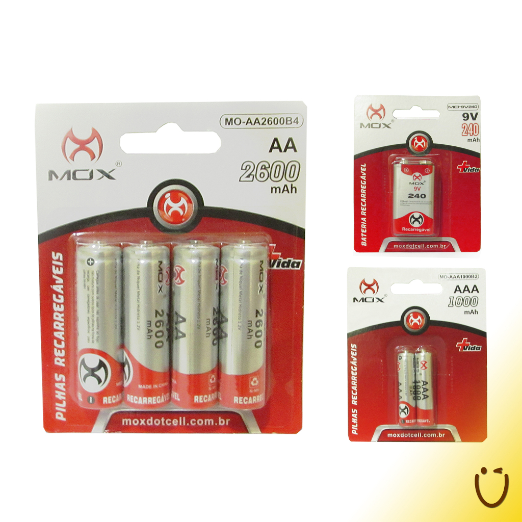 Kit Carregador de Pilhas Aa Aaa Bateria 9V Bivolt Com 4 Pilhas Recarregáveis até 4700 mAh