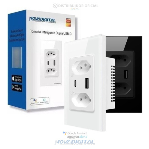 Tomada Dupla Inteligente Wifi Embutir Bivolt Com Usb + Usb-c Smart Alexa Original Nova Digital