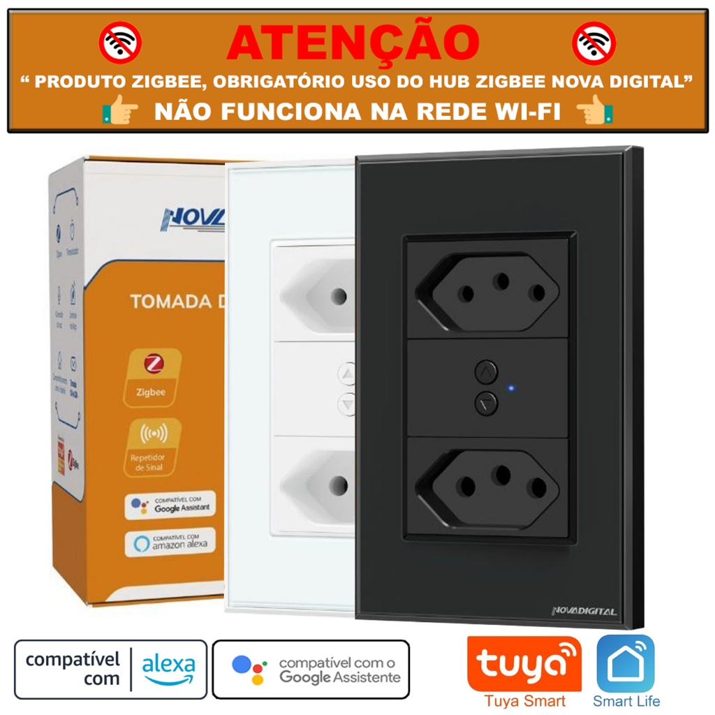 Tomada Inteligente Smart Zigbee Dupla 10a e 20a Nova Digital Tuya Compatível com Alexa e Google Home