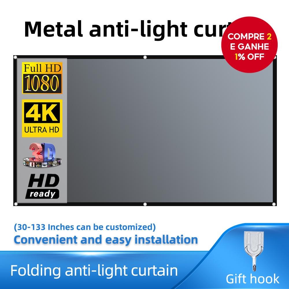 SALANGE Tela de Projetor Dobrável 60/72/84/100/120/130 16:9 Tecido Reflexivo em Metal Anti Luz Para YG300 XGIMI H3 HALO