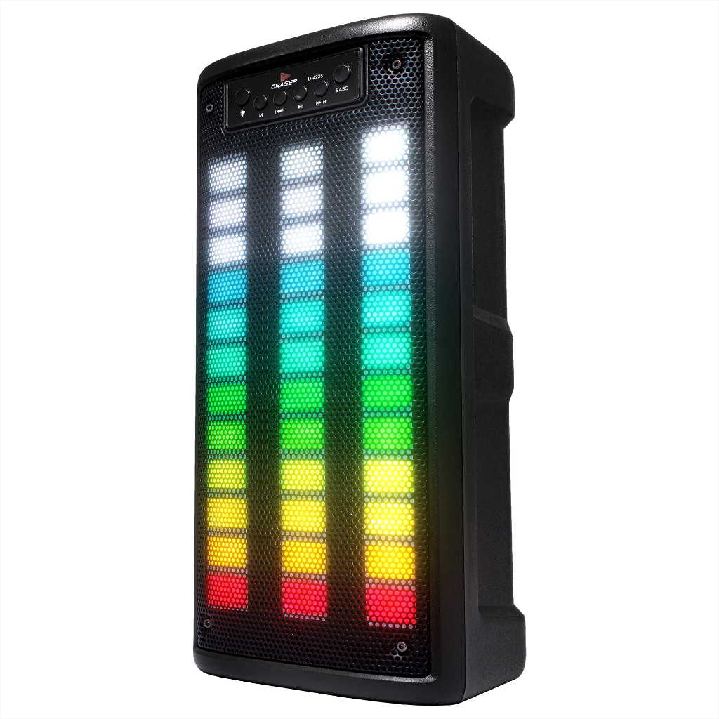 Caixa De Som Bluetooh LED Tetris RGB Rítmico Conexão TWS Entradas USB SD/TF Aux P2 e P10 Microfone