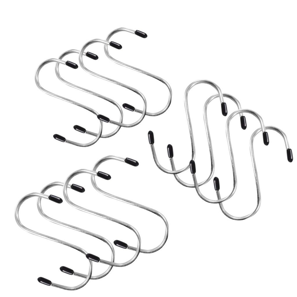 Kit 12 ganchos multiuso tipo S Organizador utensílios de cozinha roupas bolsas plantas e ferramentas kit com 4 unidades resistente metal zincado e ponta de plástico deal casa e jardim 7 CM