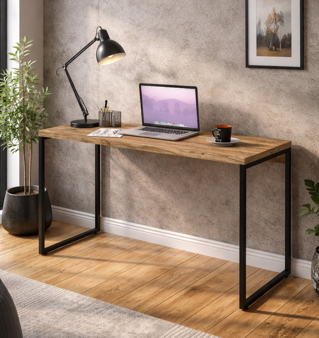 Mesa de Escritório Studio 120cm Industrial Carvalho E Preto