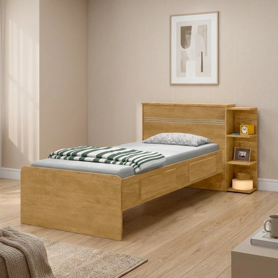 Cama Solteiro com Baú 2 Gavetas e 3 Nichos Jade Nature