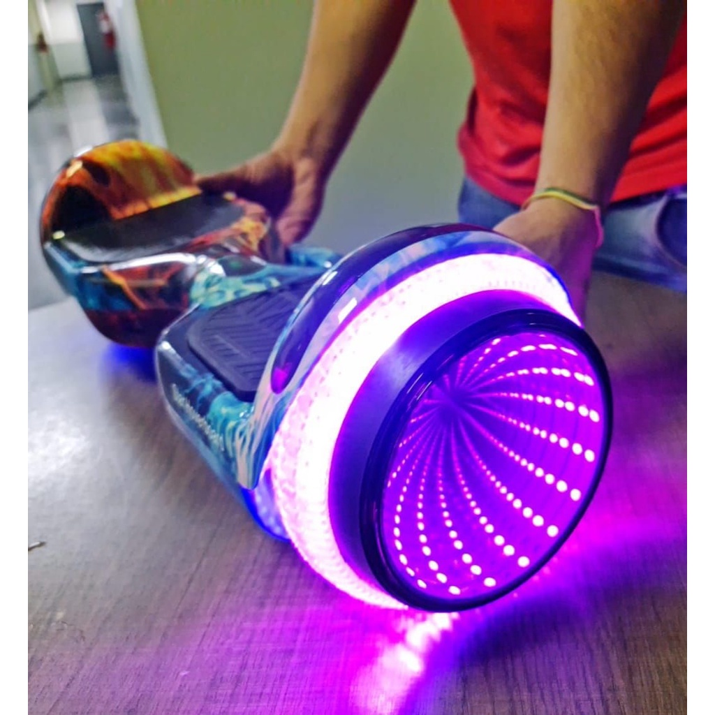 Hoverboard Skate Élétrico Bluetooth Com Led Alça Curta 6,5" Polegadas Fogo e Água