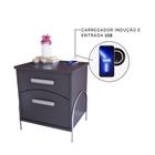 Mesa De Cabeceira Inteligente Meta Com Carregador Indução sem fio Wireless E Usb 2 gavetas pés em ferro