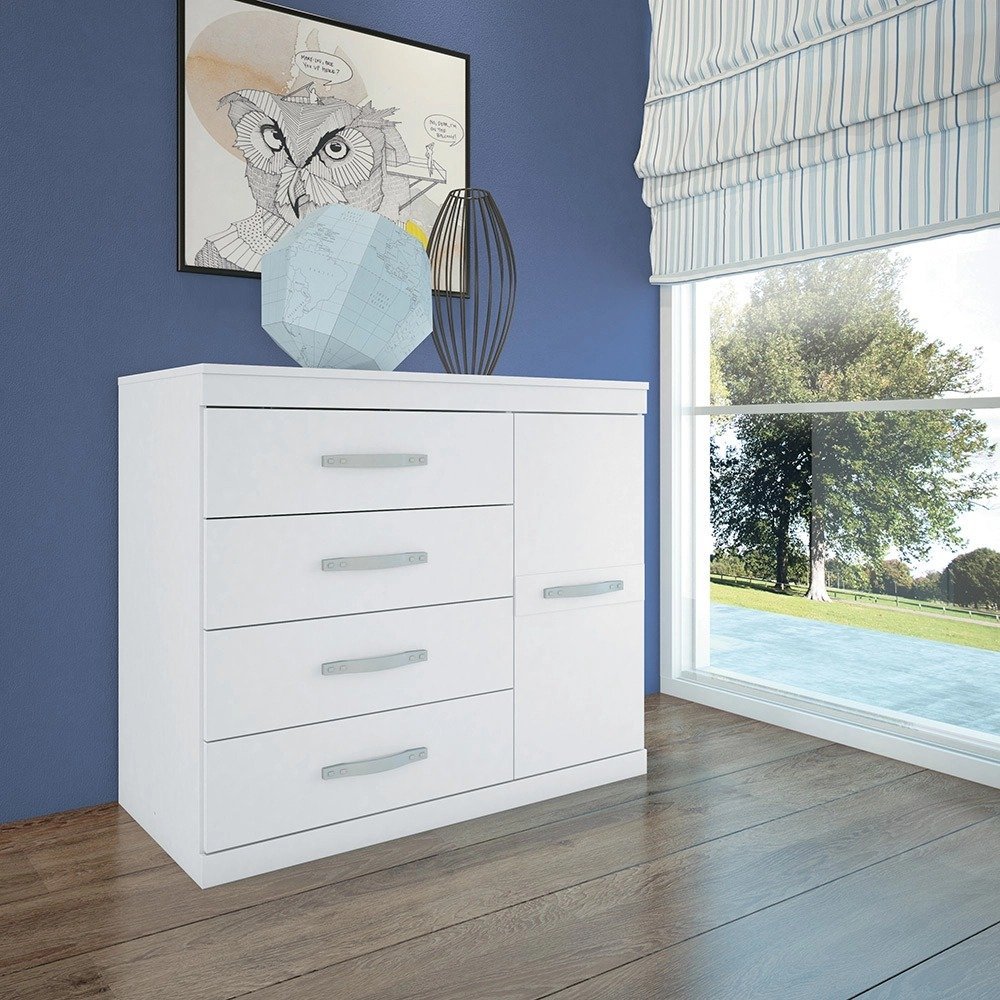 Cômoda Branco Havana Plus 4 Gavetas 1 Porta - Santos Andirá