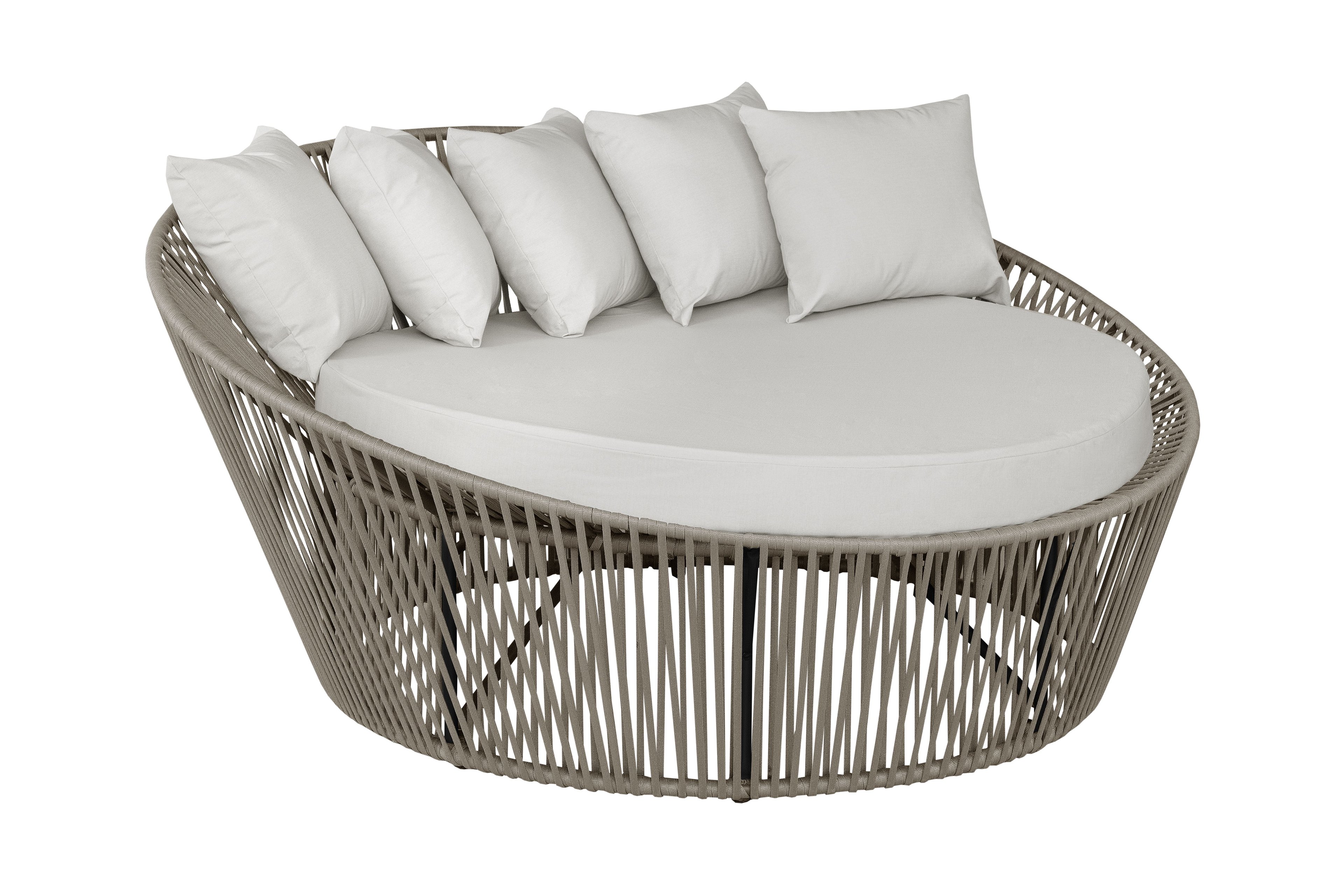 Sofá Redondo Chaise Concha com 1,40 Cm Corda Náutica Alumínio Área Externa e Interna Jardim Varanda