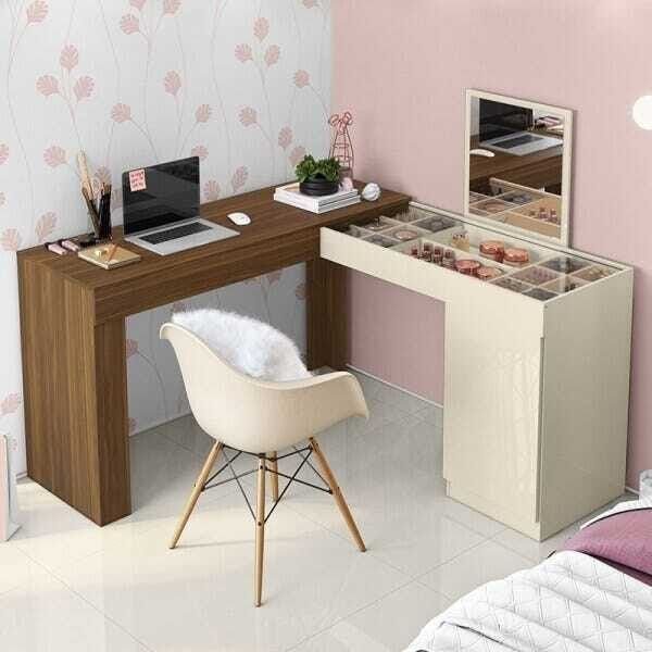Escrivaninha Penteadeira Camarim De Canto Com Espelho Jade Freijó-off White - Mabe Magazine