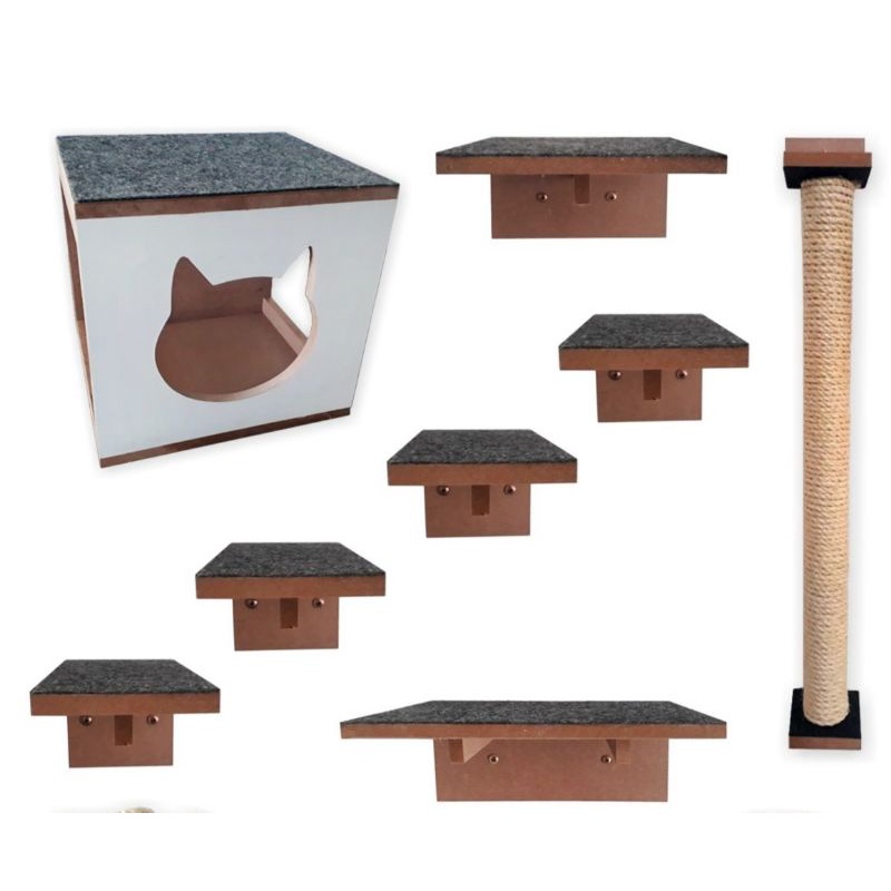 Playground Parquinho Play para gatos Toca Nicho Prateleira Degrau Arranhador Mdf 15 mm