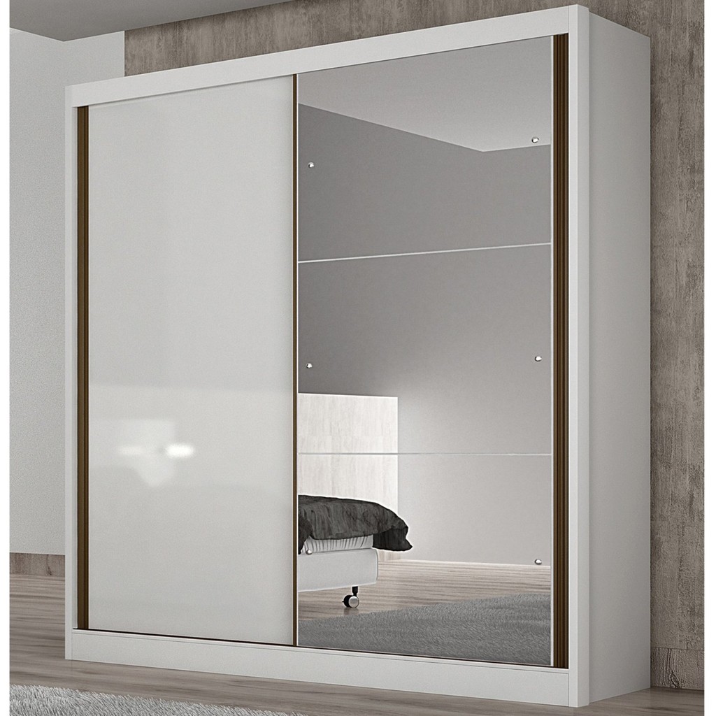 Guarda Roupa Solteiro com Espelho 2 Portas 3 Gavetas Toronto Novo Horizonte Branco