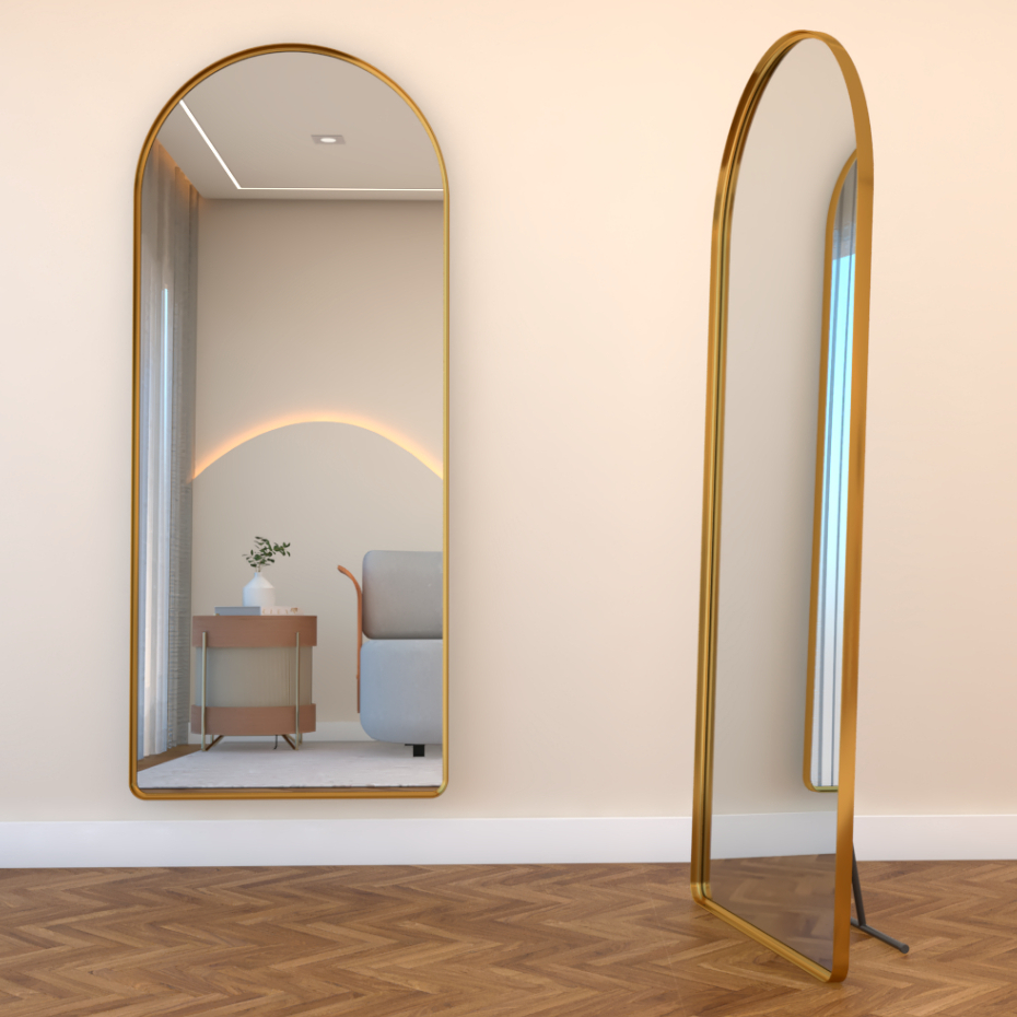 Espelho grande em arco corpo inteiro 150x60 com base reta - moldura de metal em várias cores
