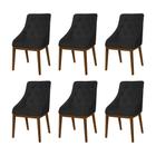 Kit 6 Cadeiras de Jantar Luxo Estofada Elisa Anatômica Capitonê Couro Pu Preto Base Madeira Maciça I