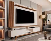 Rack e painel grecia ripado 1.8 sala de estar p/tv 72 pol-oferta:Off white/nature