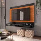 Painel Ripado 3D Para Tv Até 50 Polegadas Milos Com Prateleira 1,35m Preto/Cedro EDN