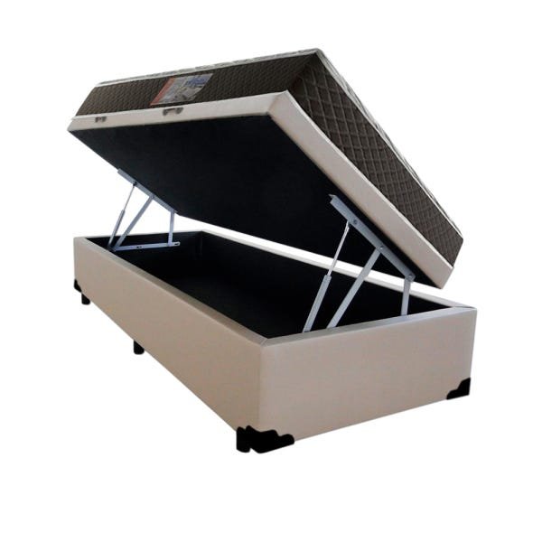 Cama Box Baú Solteiro Colchão Mola Ensacada Acolchões + Box Sintético 61x88x188 - Bege