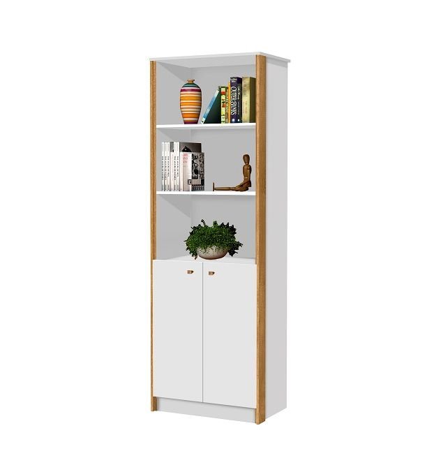 Estante Multiuso 3 Nichos E 2 Portas Office:Branco/Nature