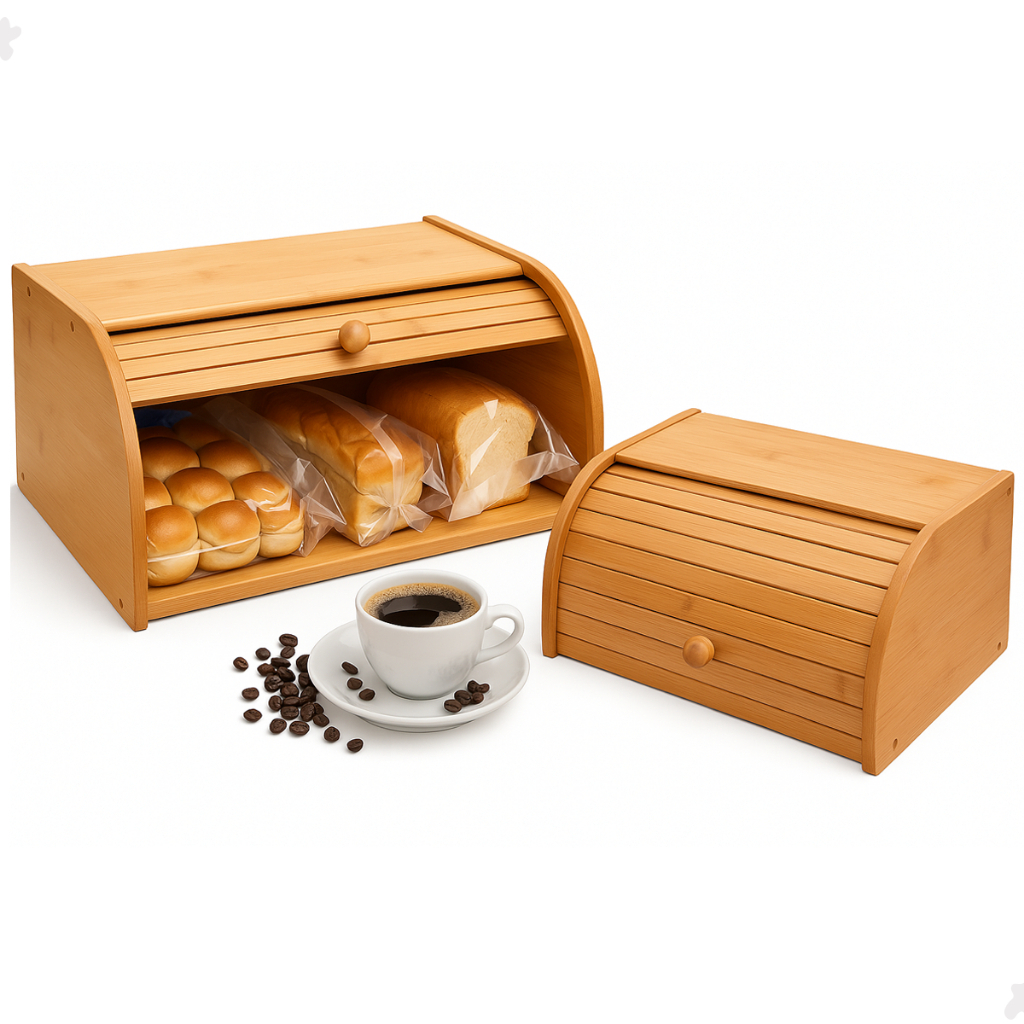 Porta Pao em Bambu Guarda Paes Bolo Massas Para Armazenamento Tampa Retrátil Mimo Style