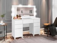 Penteadeira Camarim 5 gavetas com Led e Espelho MDF Clean branco