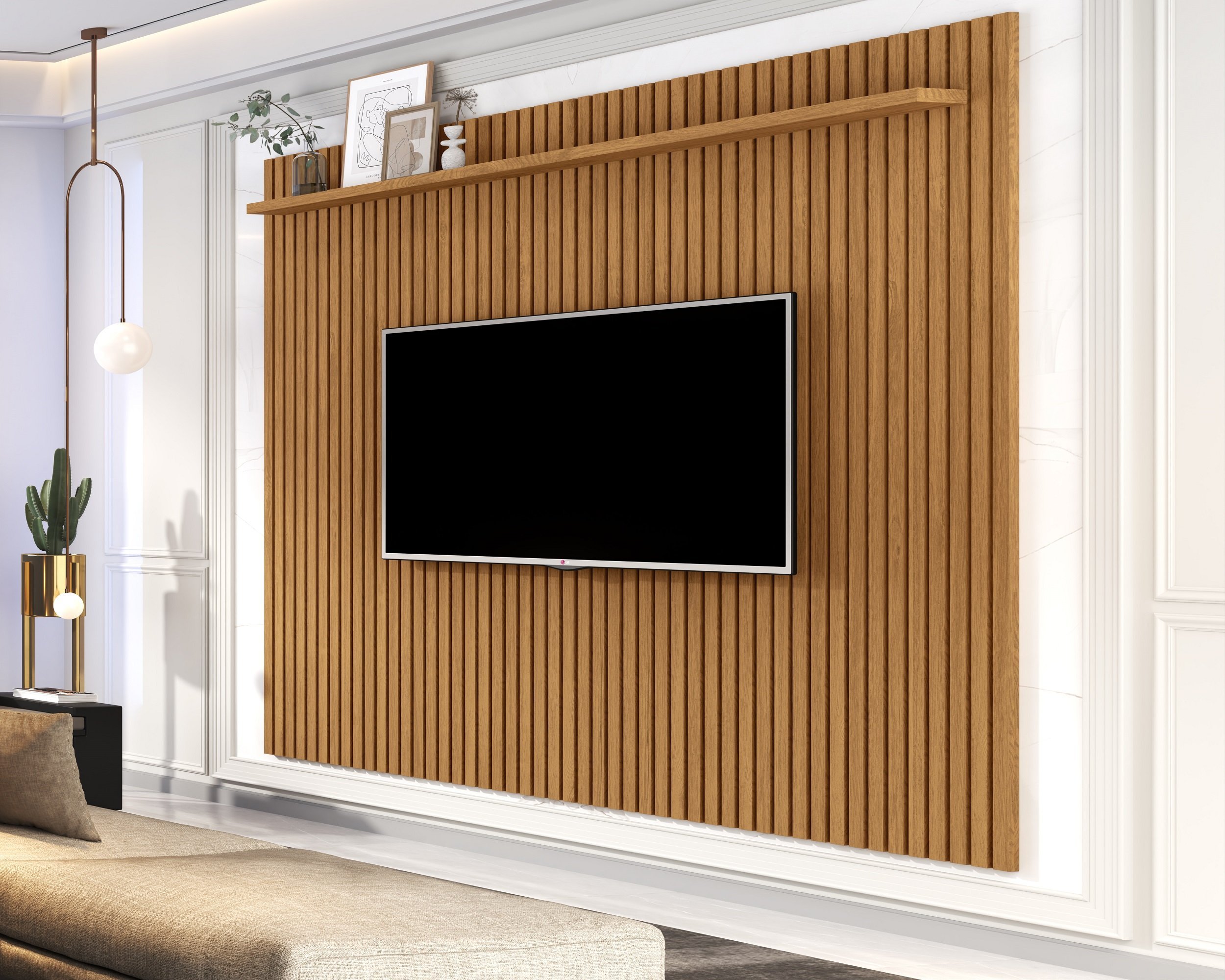 Painel para Tv até 85 Polegadas Ripado Verdadeiro Versátil 2.2×2.2 com Nicho Cumaru – Giga Móveis