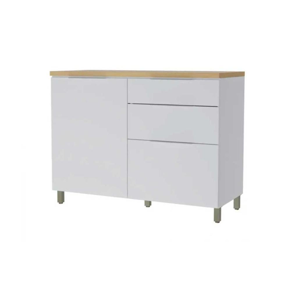 Módulo Cozinha Nesher Marquesa Balcão P/pia 1 Porta e 3 Gaveta C/ Tampo 120cm Branca/nature -