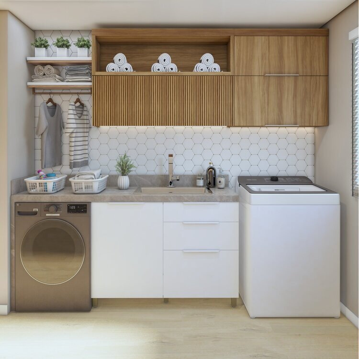 Lavanderia Modulada com 2 Armários Aéreos e 1 Balcão 1 Porta 100% Mdf