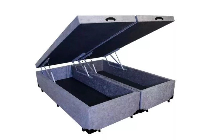 Cama Box QUEEN SIZE com Bau Pistão a gás cinza suede Bipartido - 158x198x27