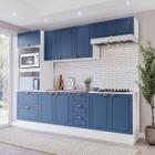 Cozinha Pérola com Rodapé 5 Peças Torre Quente Aéreo 3 Portas Balcão 120 Balcão 80 e Basculante Yesc Branco/Azul