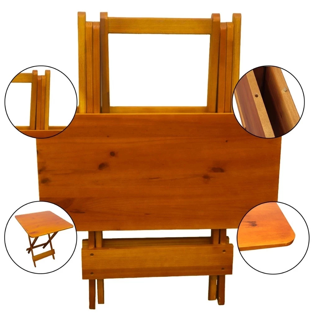Kit 5 Conjuntos de Mesa Dobravel com 4 Cadeiras de Madeira 70x70 para Restaurante e Bar - Mel