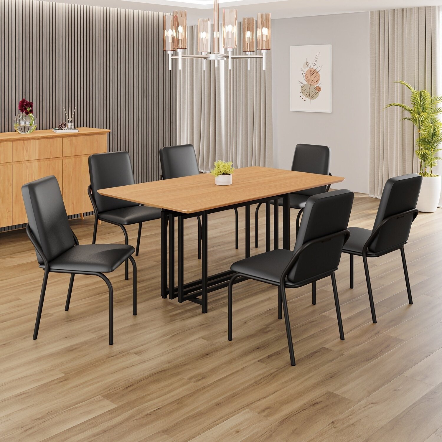Conjunto Sala de Jantar Mesa 160x90cm Base Pérola Tampo Mdf Malibu